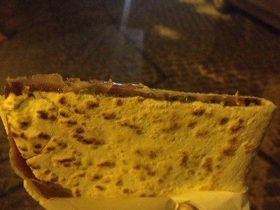 Io ho provato una classica prosciutto crudo, stracchino e rucola. Il prosciutto era salatissimo e la piada era piuttosto duretta. Se non fosse poi che l’ho pagata 4€, diciamo una cifra un po’ sopra la media rispetto alla Romagna. Il consiglio mio è quello di non andarci, se però non avete mai assaggiato una piadina romagnola e non avete un metro di paragone, allora buttatevi pure, mi farete sapere dopo come vi è sembrata.