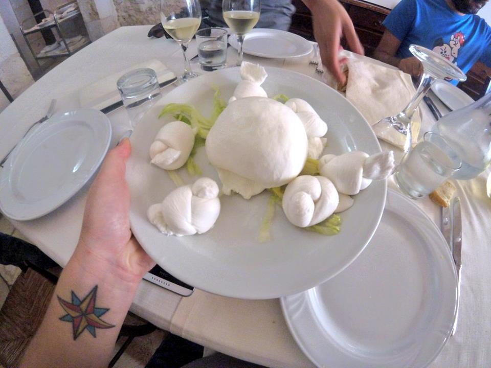 La mozzarella di bufala non l’ho assaggiata per la prima volta in Puglia, è vero, l’avevo già assaggiata in Molise e anche in Campania, ma dopo averla vista preparare alla Masseria Madonna dell’Arco mi si è aperto un mondo. Della Masseria abbiamo già parlato in un post a parte, che vi invito a leggere se volete dormire in un vero trullo e volete anche mangiare bene, mentre se volete assaggiare la burrata e la mozzarella di bufala come poche volte in vita, la Puglia potrebbe darvi una bella soddisfazione.