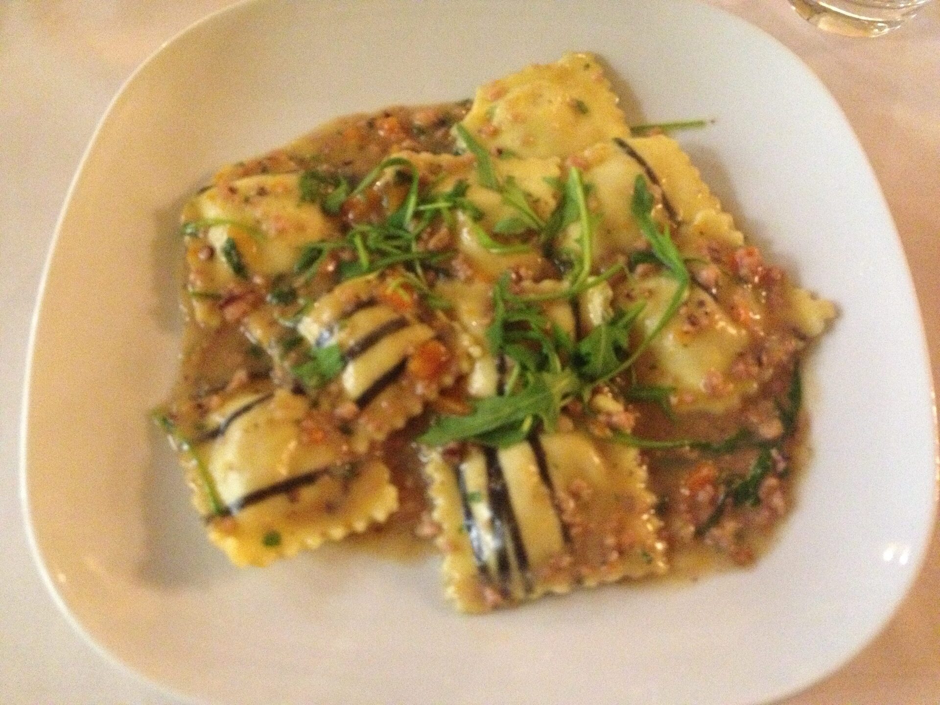 Il servizio ottimo e veloce e i piatti solo a sentirli nominare fanno venir voglia di mangiare. Tra i vini i classici italiani, magari bianchi e freschi che si accostano benissimo al pesce. Antipasti caldi e freddi eccellenti e i primi deliziosi. Nella foto dei ravioli ripieni di polpa di pesce, credetemi davvero molto delicati.