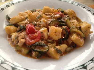 Il menù propone sia carne che pesce, ma essendo in un posto di mare io mi sono presa il pesce, e ve lo consiglio caldamente. Cosa ho mangiato? Un antipasto di mare, che al confronto della fantasia di mare, ha solo antipasti freddi mentre l’antro è composto da antipasti caldi e freddi, un primo di gnocchetti con pomodorini, formaggio, zucchine e pesce spada. Una delizia!