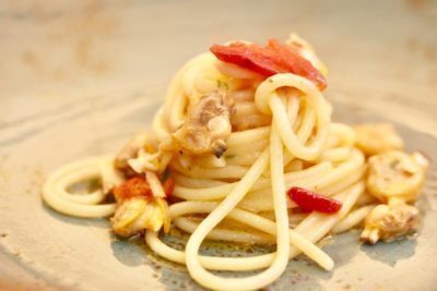 Come primi piatti mi piacciono molto gli Spaghetti con Vongole alla Posillipo e i Lumaconi di pasta di Gragnano con ragù di pesci all’Isolana.