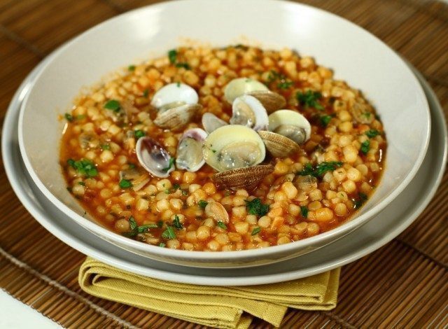 La fregola è un tipo di pasta di semola di grano duro che ha la forma di piccole palline, simile al cuscus però un po’ più grossolana. E’ molto versatile perché è perfetta anche per le minestre di pesce o di carne. Una variante che si trova in quasi tutti i ristoranti tipici è quella con le arselle o le vongole servita su un letto di pane carasau.