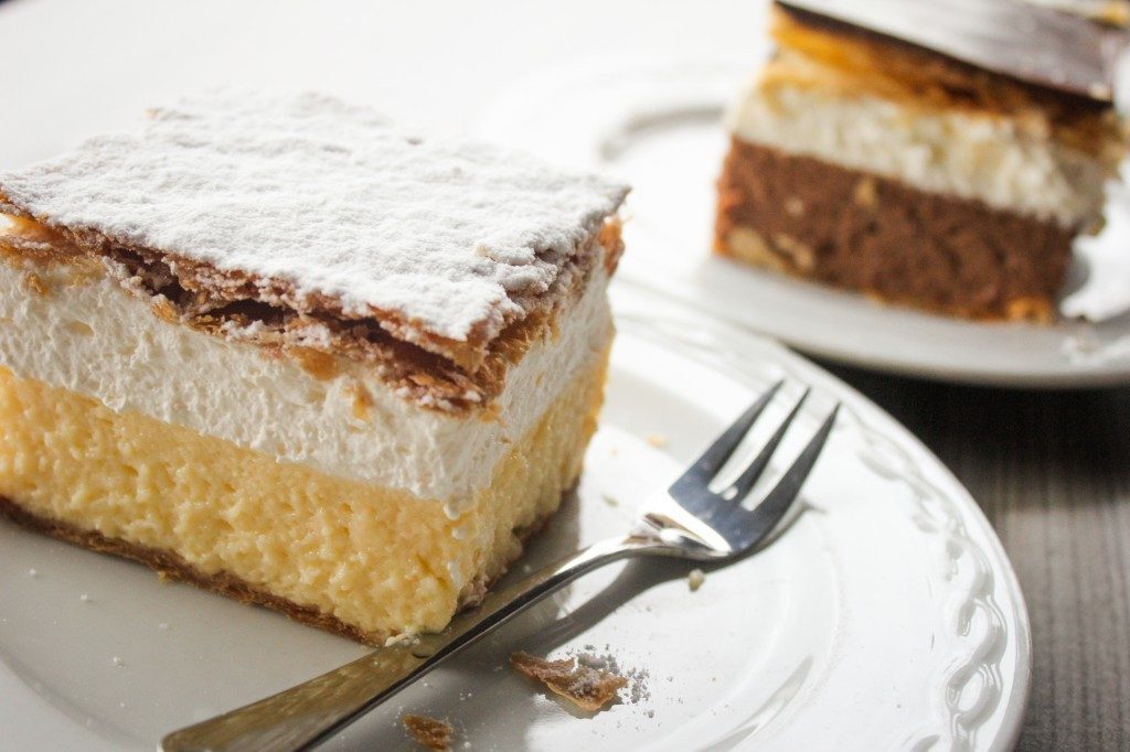 Una tentazione irresistibile, tipica della zona attorno al bellissimo Lago di Bled. Immaginate un enorme “Kinder Paradiso”, ma molto più fresco e soffice. Nella torta alla crema di Bled non si è badato a spese, né a calorie.
