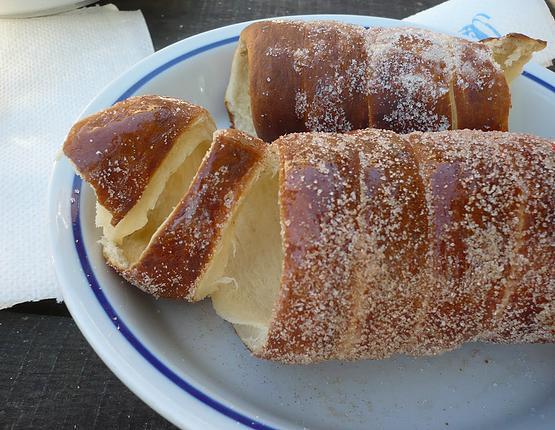 Un dolce tipico ungherese molto buono, chiamato anche torta a camino. Lo si potrebbe descrivere come un cannolo di sfoglia lievitata e zuccherata, cotto su uno spiedo e preparato al momento. Lo zucchero, cotto nel fuoco, diventa croccante e caramellato. Per renderlo più goloso viene ricoperto da cioccolato, vaniglia, mandorle o cannella, a seconda delle preferenze, mentre l’interno resta vuoto.