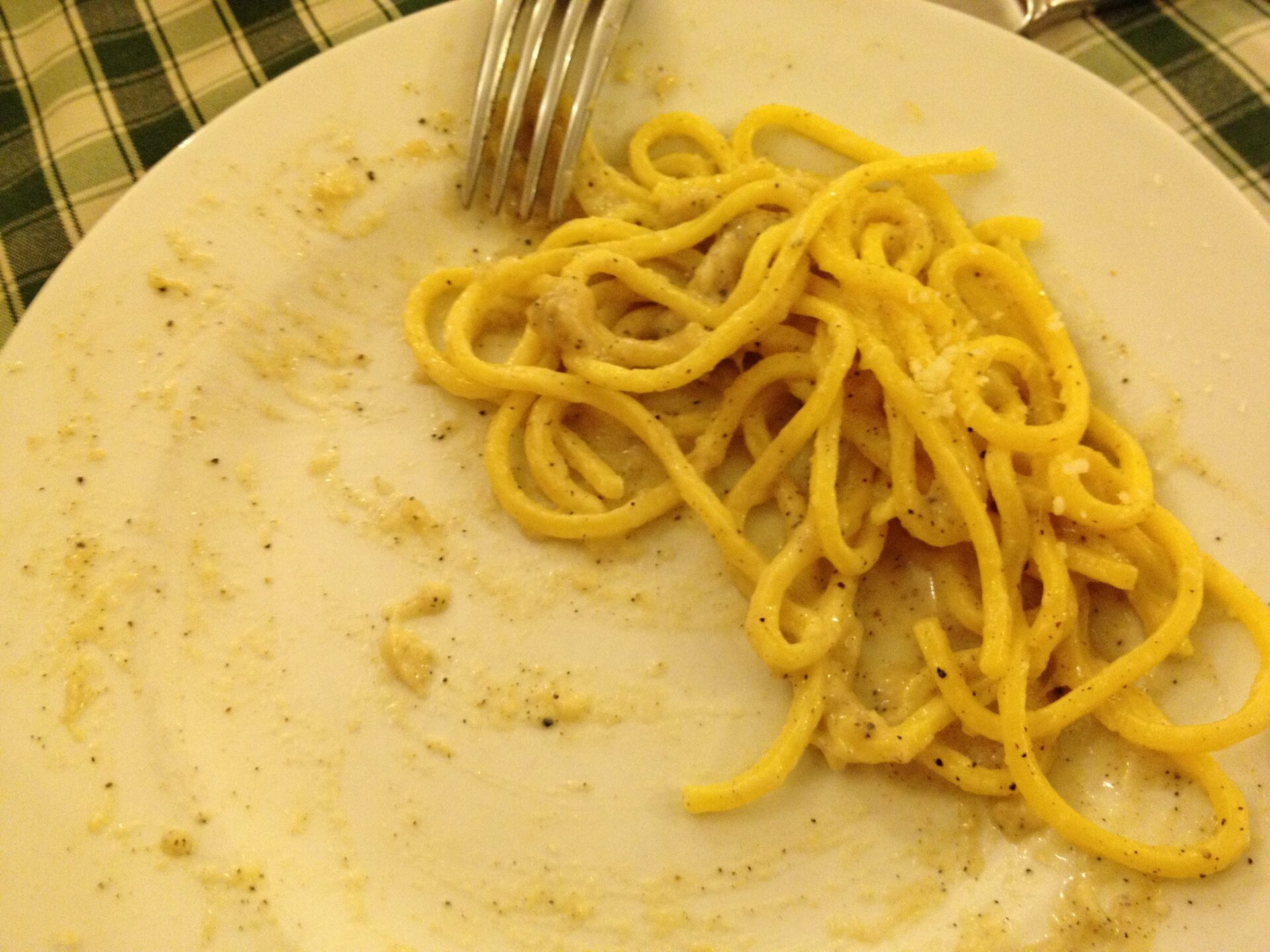 Quello che ho provato io è un piatto di tonnarelli cacio e pepe (perché mi piacciono da morire) e devo dire che non sono rimasta affatto delusa. La pasta è all’uovo, quindi forse un po’ pesante, ecco perché per secondo non ho preso nulla. I prezzi sono molto buoni considerando che, data la popolarità del luogo, potrebbero tranquillamente alzarli un po’.