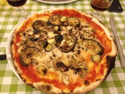 La conduzione è totalmente familiare, si capisce subito dai visi dei componenti, molto simili e dalle movenze, proprio di famiglia. Il menù non è enorme, pochi e semplici piatti della tradizione romana. Diversi primi, antipasti, pizza e pesce. Le verdure sono fresche e di stagione, lo so perché io ho preso una pizza ortolana e si vedevano le verdure della stagione attuale, questo è un punto a loro vantaggio.