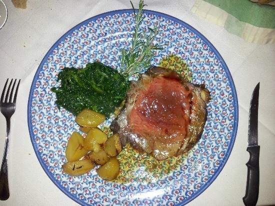D’estate ci si può accomodare ai tavolini fuori, riparati da tende e piante sotto la Rocchetta, o altrimenti nelle salette rustiche all’interno, e non è raro trovarsi a pranzo o a cena seduti vicino a uno degli artisti che lavorano a Pietrasanta, tra cui lo scultore Botero. L’ambiente è semplice, in stile toscano, i piatti casalinghi con porzioni abbondanti, i prezzi sono da trattoria, e sicuramente più bassi rispetto agli altri ristoranti in centro (antipasto, primo, dolce, vino e caffè circa €30 a persona).