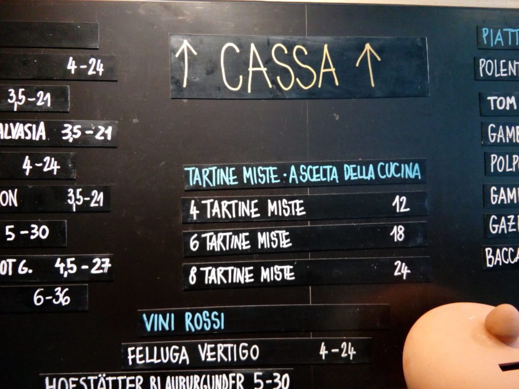 L’offerta del giorno è scritta in bella evidenza proprio sulla lavagna, fra pescato del giorno e selezione di tartine. Da bere un’ampia scelta fra vini al bicchiere o birre. Si paga, si lascia il nome e la comanda passa in cucina. Bisogna essere prima certi di avere un posto dove sedere perché non si può prenotare e la clientela non manca.