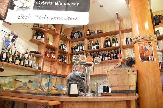 Non solo cicchetti, tra l’altro con il baccalà in tutte le salse, ma anche musetto e i “francobolli”, o paninetti come li chiamano i veneziani, con cotto e funghi tartufati, wurstel e caciotta, porchetta e melanzane e chi più ne ha più ne metta. Eccezionale la scelta di vini sia bianchi che rossi e la varietà di spritz sbagliati che propongono con gin e con vodka.