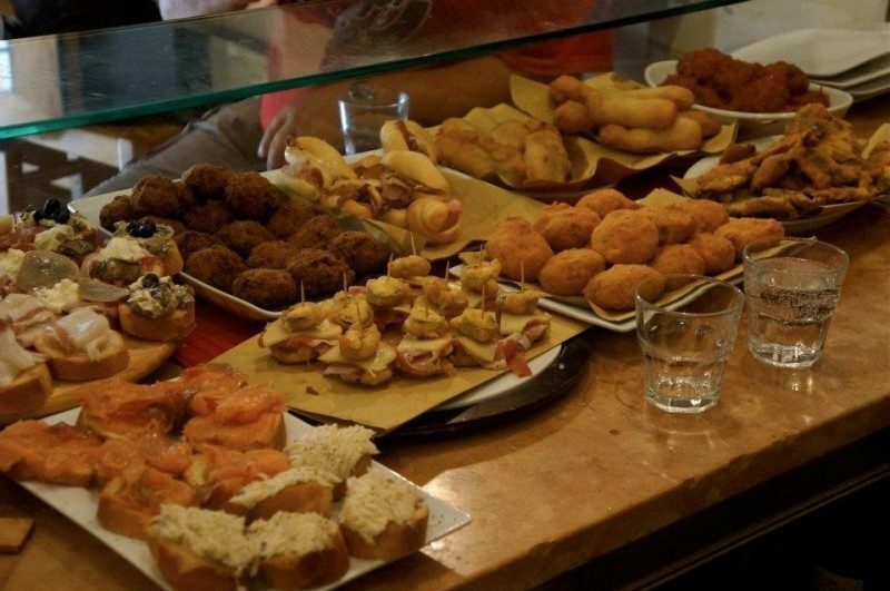 I cicchetti classici sono con baccalà, ma anche con salumi, formaggi e ci sono le polpettine al tonno.
