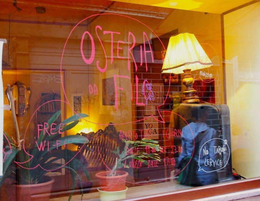 Non perdetevi il “raboso frizzante”, vino locale poco conosciuto e le polpette al formaggio. Ah! Su ordinazione anche onesti piatti di pesce crudo.