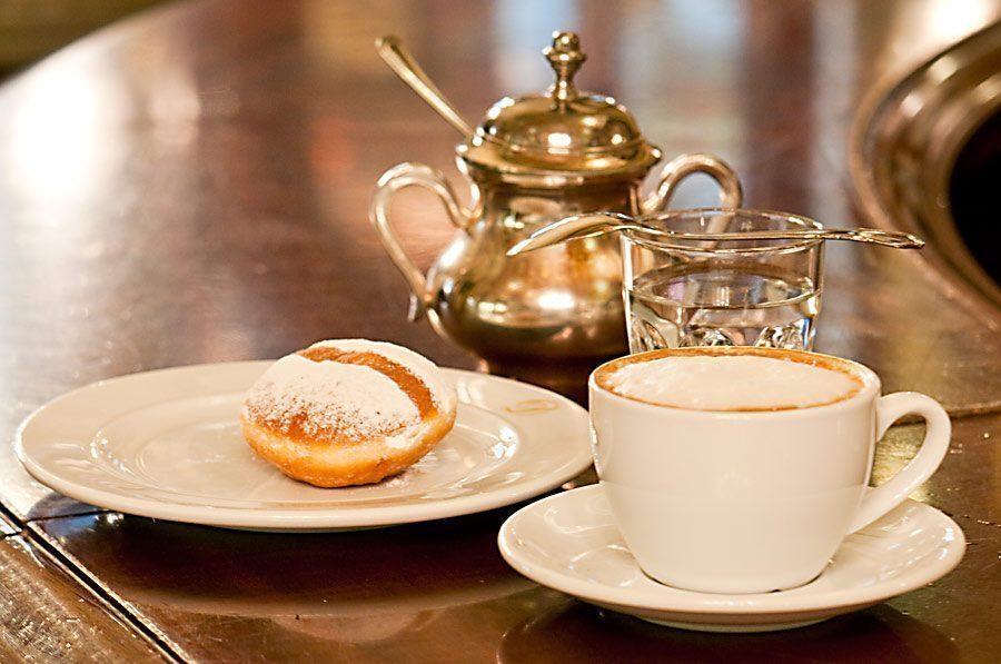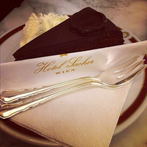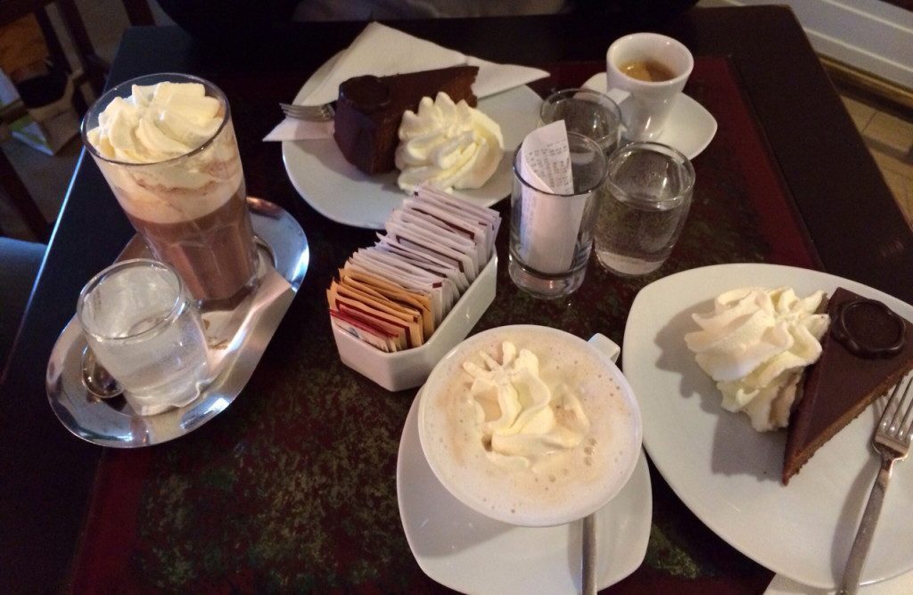 Per il dolce trattenetevi. Chiudete il conto e spostatevi all’Hotel Sacher a pochi passi di distanza. Se siete sfortunati ci sarà un po’ di cosa da fare per avere un tavolino, ma è una tappa, turistica, obbligata. Una fetta di torta sacher supera i 5 euro, per nulla economica, ma una volta nella vita dovete provarla qui dov’è nata. Per i più raffinati c’è l’alternativa della sacher trinkschokolade, una cioccolata liquida al bicchiere con una buona dose di panna montata di pasticceria. Io, che non amo le torte, l’ho provata e ne sono rimasta soddisfatta: è una cioccolata da bere, dunque non densa e cremosa, ottima per scaldarsi durante l’autunno e l’inverno austriaci.