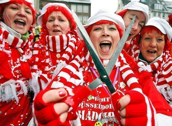 Una delle giornate più belle di questo vento, la Weiberfastnacht, il Carnevale dedicato alle donne che hanno il dominio su tutta la città. Usanza vuole che la donna per un giorno abbia tutti i poteri e che possa per un solo giorno all’anno andare per la città distribuendo baci agli uomini o tagliando loro la cravatta.