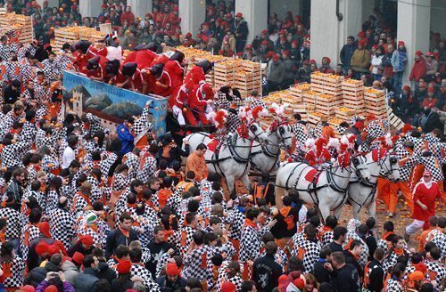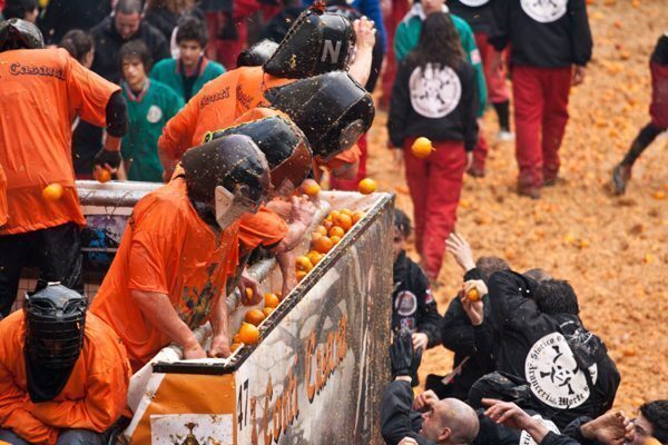Una precisazione va fatta. La battaglia delle arance nasce, nel 1947, al di fuori dell’ufficialità del Carnevale, così come anche le squadre degli arancieri. Storicamente è stata poi inclusa nell’evento attribuendole la simbologia storica della sommossa.