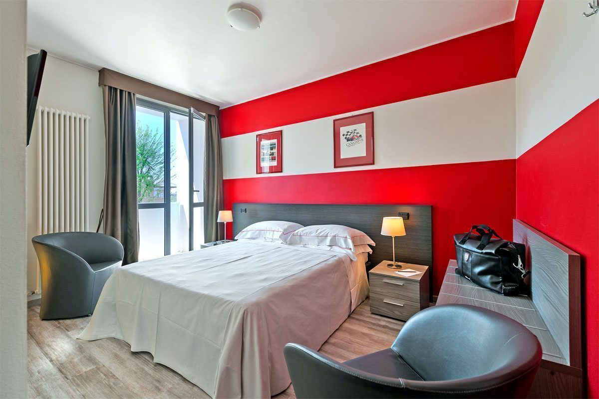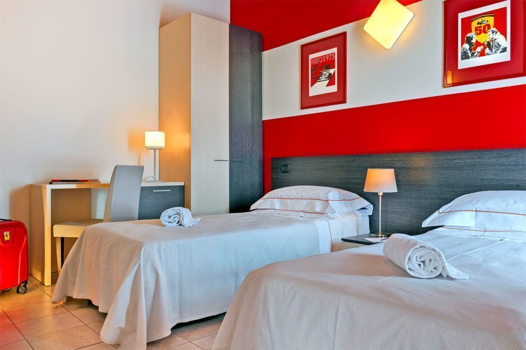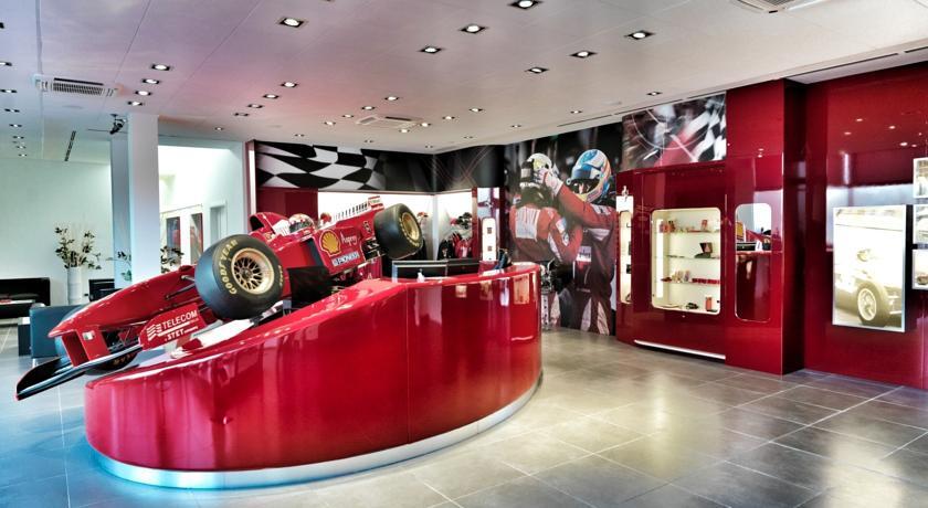 All’entrata dell’hotel campeggia una vera monoposto di F1 in dimensioni reali e in tutti gli ambienti ricorre il tema Ferrari.