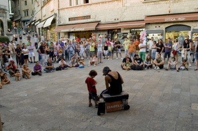 emergenti, artisti di strada con i loro mille modi di divertire, truccatori per i bambini, proiezioni di progetti