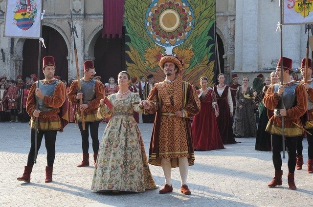 Ques’anno il tema del Palio è Il viaggio dell’eroe”, come Guerrino detto il meschino girò i mondi, sconfisse i giganti e trovò l’amore e durante le giornate ci saranno gli eventi tradizionali: venerdì sera la consegna delle chiavi al Podestà da parte del sindaco, la presentazione delle contrade e lo spettacolo degli arcieri. Sabato invece, nella piazza, si svolgerà tradizionale convivio: se volete vivere la serata in prima fila mangiando tra i signori del borgo dovrete però sborsare una cifra non proprio low-cost! Durante la sontuosa cena l’atmosfera verrà animata dallo spettacolo che da’ il titolo al Palio in cui i protagonisti saranno fuochi, danze e bandiere. La domenica invece già dalla mattinata si entra nel vivo, vengono aperte le taverne e nel pomeriggio si svolgono i giochi che decreteranno la contrada vincitrice, il tutto accompagnato come sempre da danze, sbandieratori, cortei e musica. Dopo cena lo spettacolo “I sette vizi capitali” della Compagnia all’Improvvisata e i fuochi artificiali concluderanno il Palio.