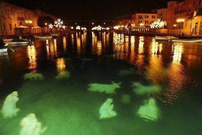 Nel Canale di Mezzo infatti si assisterà all’ arrivo dei pastori e della Sacra Famiglia a bordo di barche ,seguirà la Benedizione al Bambin Gesù ed ai presenti infine i sommozzatori del Sub Club di Peschiera d/G posano sul fondo del Canale il Bambin Gesù del Presepio del Lago. Lo spettacolo è veramente speciale quando calano le luci della sera con le sacre figure sott’acqua illuminate e le luminarie di Natale che riflettono le loro luci nell’acqua. Componendo poi il numero telefonico che è messo ben in vista sulla ringhiera del ponte, in acqua si attiva un scenografico gioco di luci.