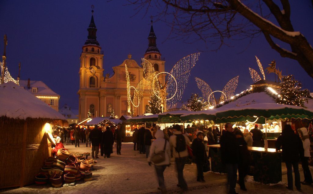 A15 minuti di S-Bahn da Stoccarda vale la pena visitare un altro mercatino, quello di Ludwigsburg. Questa città è segnata dalla presenza di castelli in stile barocco, in particolare Residenzschloss, così tanto ispirato alla reggia dei re francesi da essere denominato ” la Versailles di Svevia”. E così il mercato di Natale non poteva essere che caratterizzato dal barocco.