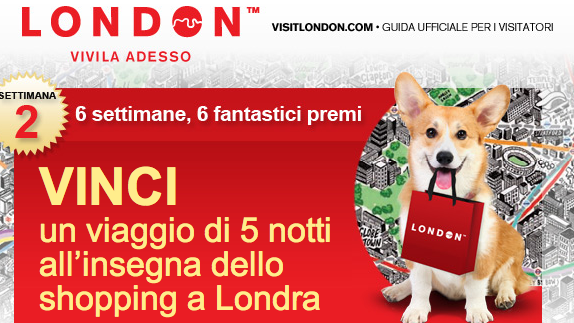 Vinci un viaggio nella capitale mondiale dello shopping. Un viaggio a Londra facile da vincere per una vacanza all’insegno del divertimento e dello shopping. Che cosa stai aspettando?