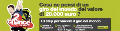 Il concorso scade il 14 agosto e in palio si vince un viaggio da giro del mondo del valore di 20.000 euro, una bella sommetta. Inoltre il vincitore al ritorno dal viaggio avrà diritto a un posto di lavoro all’estero presso la società Europe Assistence. 3 step per vincere un giro del mondo, molte occasioni per raccontare il proprio viaggio e una comunità di viaggiatori che voterà il report più bello, cosa aspetti? Iscriviti subito.