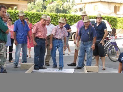 La ruzzola è un gioco davvero molto antico, che già nella zona della Maremma si praticava a fine ‘800. Il gioco si svolge a squadre di due persone che a turno tra di loro e con l’altra squadra si sfidano tirando più lontano possibile la ruzzola.