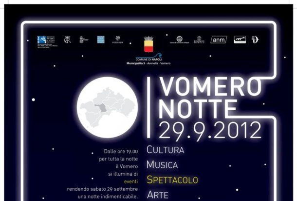 Vomero Notte è la notte bianca al Vomero il prossimo 29 settembre. Le strade del quartiere collinare del Vomero per una notte saranno rallegrate da musica, spettacoli, arte e vendita di prodotti tipici. La manifestazione è stata realizzata con la collaborazione della Soprintendenza, l’Accademia delle Belle Arti, il Conservatorio e la Camera di Commercio.