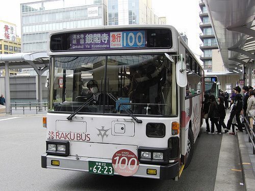 Nei bus di Kyoto si sale da dietro e si scende da davanti. Salite pure, pagherete solo al momento di scendere e cercate di avere i soldi in moneta, la corsa viene 230 yen. Io avevo fatto un pass per due giorni dal costo di 2000 yen, un po’ caro forse, ma se pensate che con questo ho fatto anche tutte le escursioni, direi che conviene.