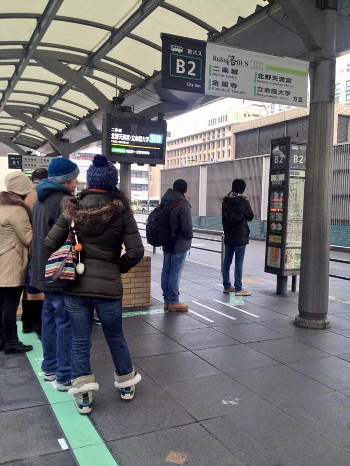 Considerate infine che per prendere un autobus, come qualsiasi mezzo in Giappone, dovrete rispettare le file. Questa foto sopra è per farvi vedere come sono indicate le file, e mi raccomando in fila indiana :)