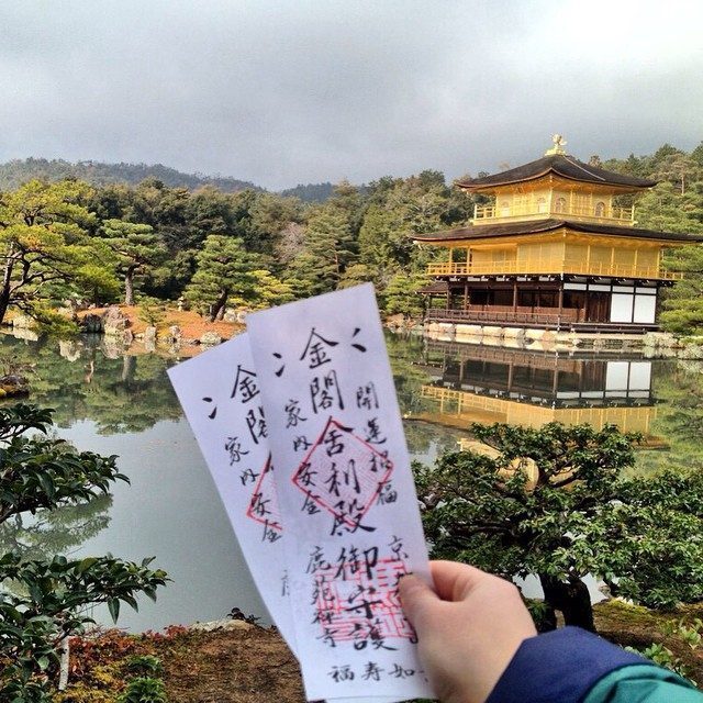 Il Tempio Kinkaku-ji, o Padiglione d’Oro, era originariamente la villa di uno generale del periodo Muromachi e solo alla sua morte fu trasformata in tempio. Il padiglione, ricoperto con foglie d’oro, è uno dei templi più belli, famosi ed affollati del Giappone. Nella foto vedete oltre al padiglione i bellissimi ticket di ingresso. Per arrivare prendete l’autobus 205 dalla stazione di Kyoto e scendete alla fermata Shinkaku-ji-michi.