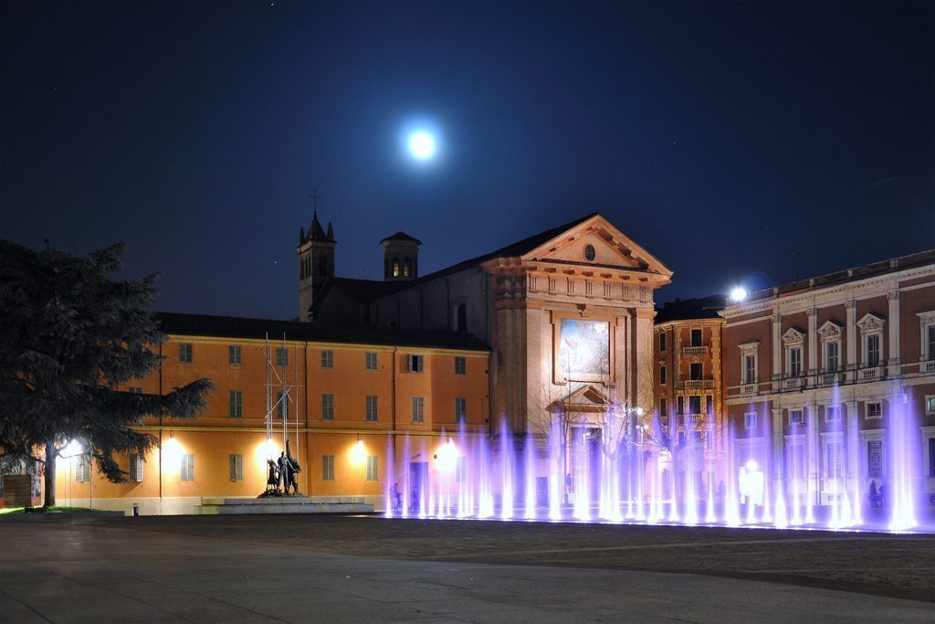 - Tornando nella parte più centrale, attraversando via Emilia, sul lato nord si trova quella che viene chiamata Piazza dei Teatri, che in realtà è l’insieme di più piazze (Piazza della Vittoria, Piazza Martiri del 7 Luglio, Piazza XXV Aprile) e vie su cui si affacciano i tre teatri della città: lo scenografico Teatro Municipale Valli, il Teatro Ariosto e il Teatro della Cavallerizza.
