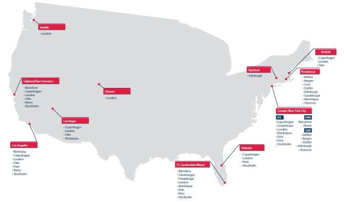 A Roma, da novembre, saranno presenti due Boeing 787 – 8 Dreamliner che entreranno in servizio rispettivamente a novembre 2017 e febbraio 2018. Il calendario voli prevede 4 collegamenti a settimana verso New York (Newark) nei giorni di lunedì, giovedì, venerdì e domenica e 2 verso Los Angeles da novembre a febbraio, martedì e sabato.