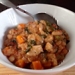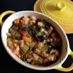 Unire i fagioli non passati e fare cuocere per almeno un’ora, aggiungendo un po’ di brodo vegetale se necessario. Aggiustare di sale e pepe.